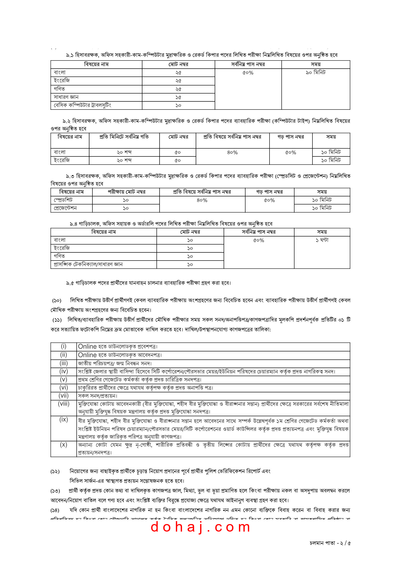 অন্যান্য যোগ্যতা : কম্পিউটার টাইপিং-এ প্রতি মিনিটে শব্দের গতি বাংলা ও ইংরেজিতে ২০।