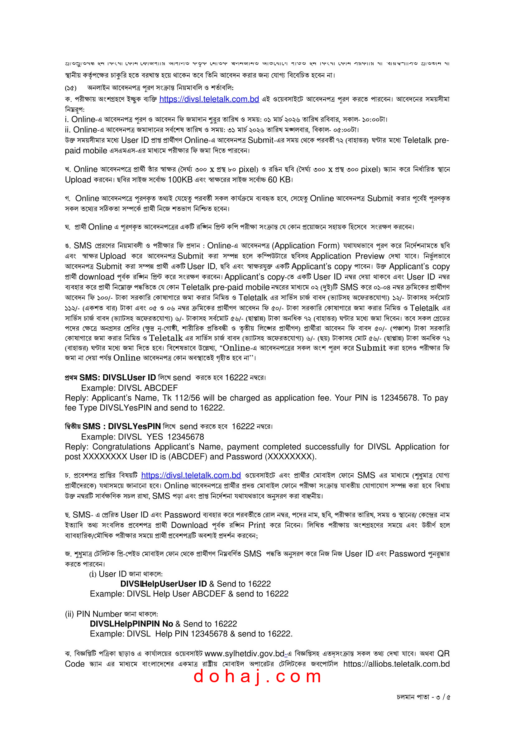 আবেদন প্রক্রিয়া: আগ্রহী প্রার্থীদের http://divsl.teletalk.com.bd এই ওয়েবসাইটের মাধ্যমে আবেদন করতে হবে।