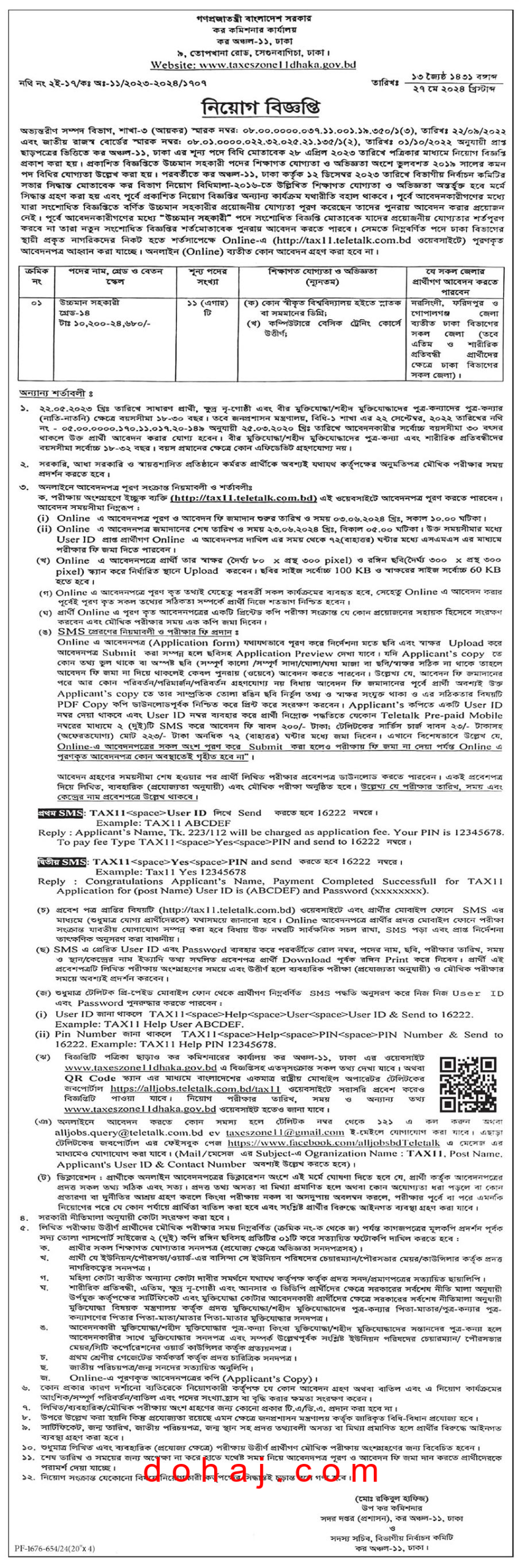 আবেদন প্রক্রিয়া: আগ্রহী প্রার্থীরা অনলাইনে http://tax11.teletalk.com.bd এই ওয়েবসাইটে গিয়ে আবেদনপত্র পূরণ করতে পারবেন।