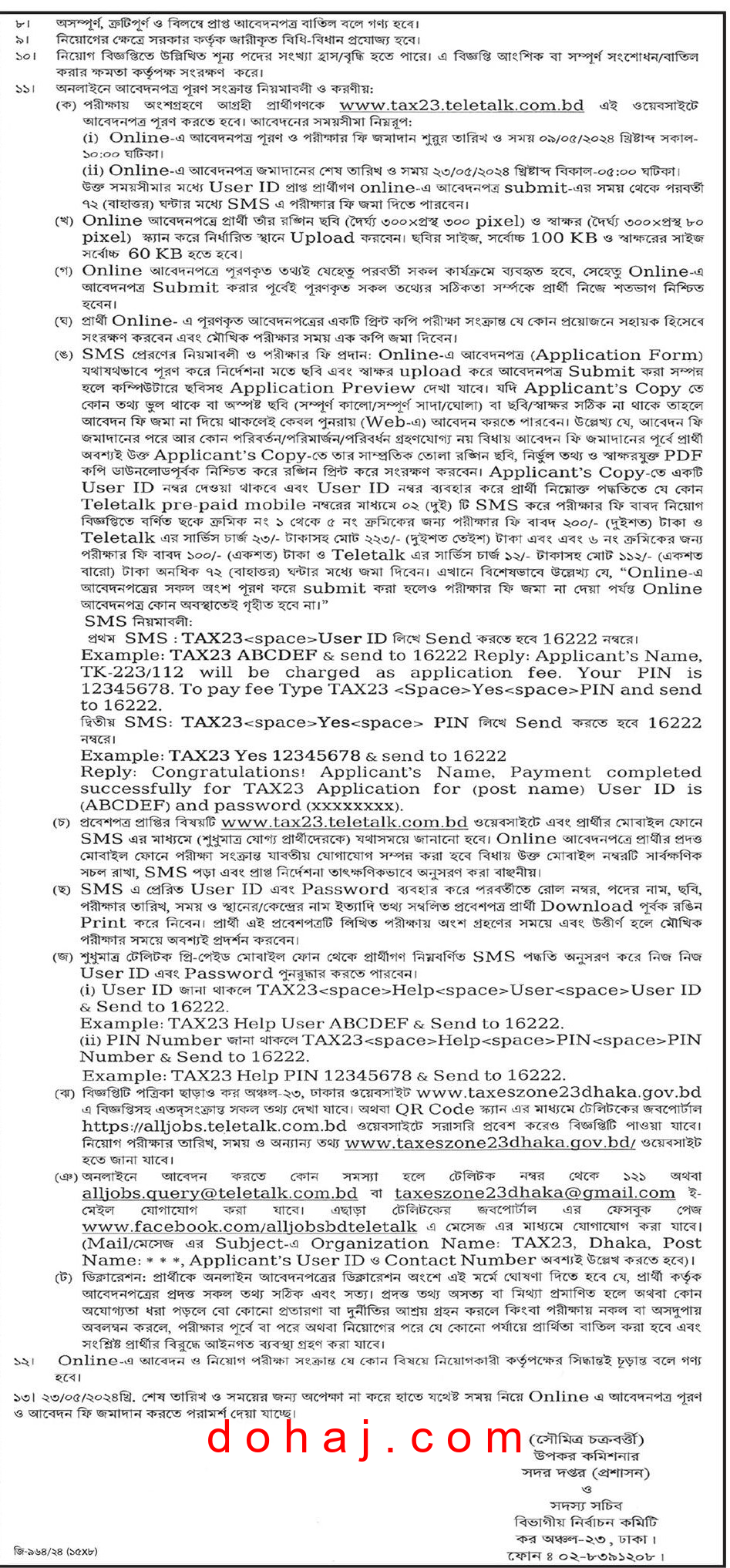 আবেদন প্রক্রিয়া: আগ্রহী প্রার্থীরা অনলাইনে http://tax23.teletalk.com.bd এই ওয়েবসাইটে গিয়ে আবেদনপত্র পূরণ করতে পারবেন।