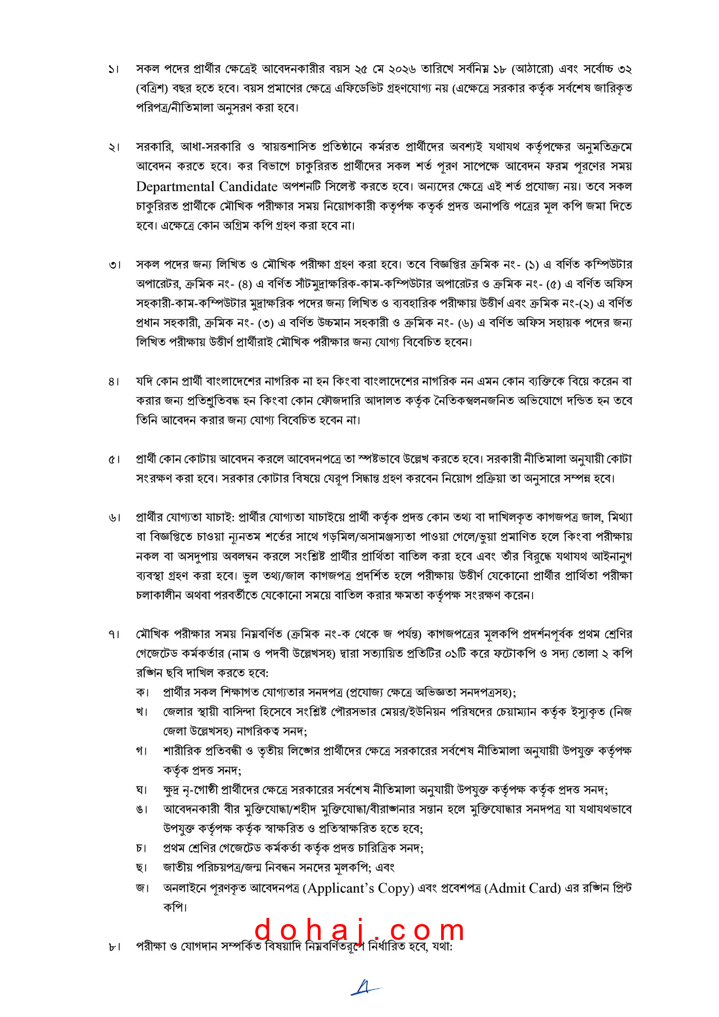 অন্যান্য যোগ্যতা: কম্পিউটার টাইপিং-এ প্রতি মিনিটে শব্দের গতি বাংলা ও ইংরেজিতে ২০ ও ২০ শব্দ।
