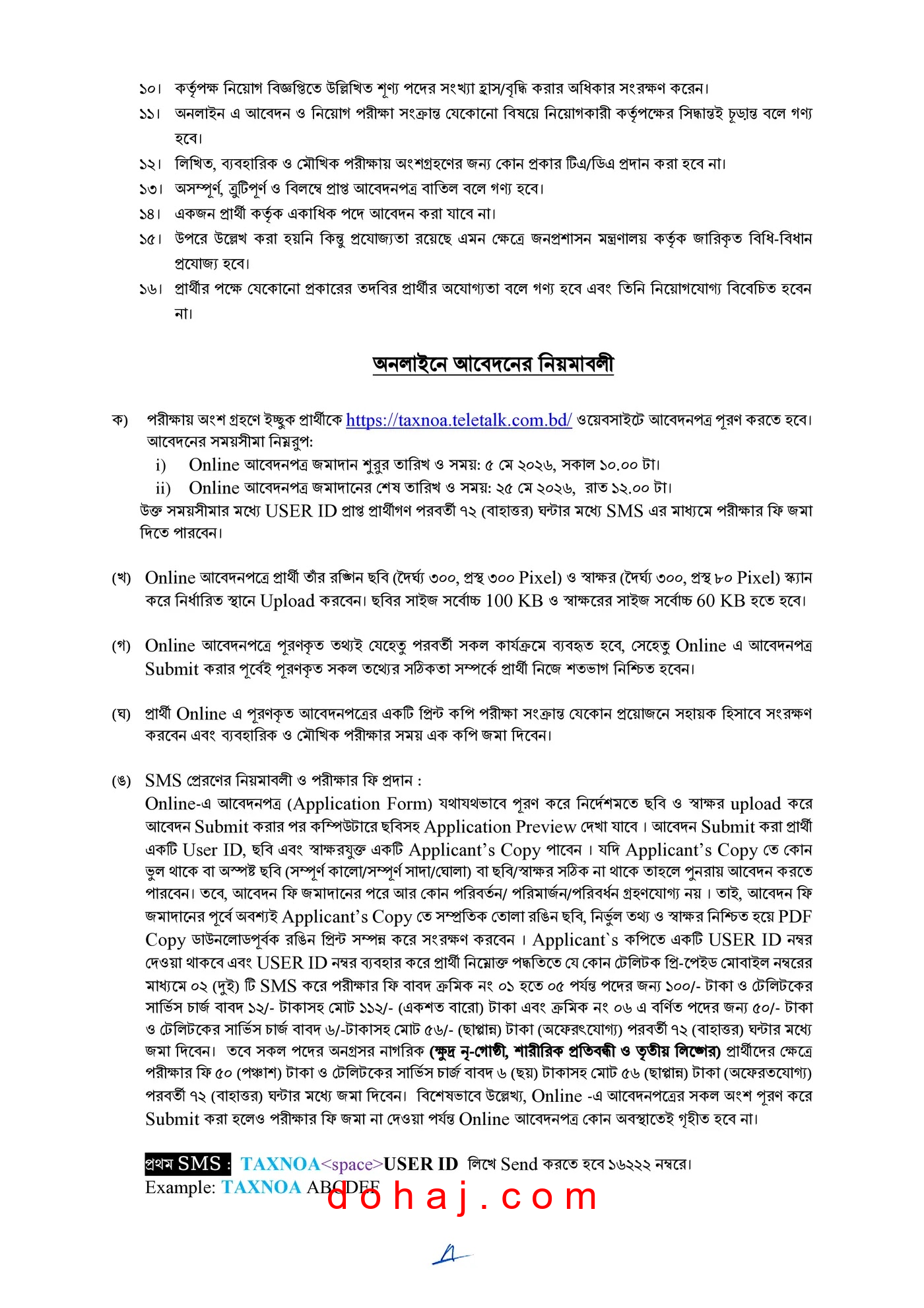 আবেদন প্রক্রিয়া: আগ্রহী প্রার্থীরা অনলাইনে http://taxnoa.teletalk.com.bd এই ওয়েবসাইটে গিয়ে আবেদনপত্র পূরণ করতে পারবেন।