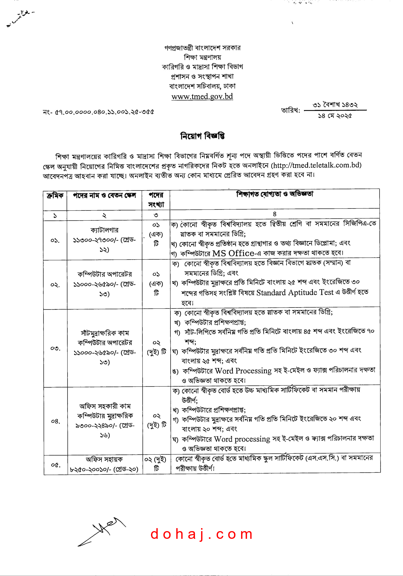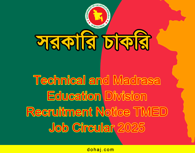 Technical and Madrasah Education Division Job Circular: শিক্ষা মন্ত্রণালয়ের কারিগরি ও মাদ্রাসা শিক্ষা বিভাগ এর শূন্য পদসমূহে সরাসরি জনবল নিয়োগ দেয়া হবে। কারিগরি ও মাদ্রাসা শিক্ষা বিভাগ ০৫ টি পদে মোট ০৮ জনকে নিয়োগ দেবে। পদগুলোতে নারী ও পুরুষ উভয়েই আবেদন করতে পারবেন। আগ্রহী প্রার্থীরা অনলাইনে আবেদন করতে পারবেন। আগ্রহ ও যোগ্যতা থাকলে আপনিও আবেদন করতে পারেন। সম্পূর্ণ বিজ্ঞপ্তি বিস্তারিত দেওয়া হল।