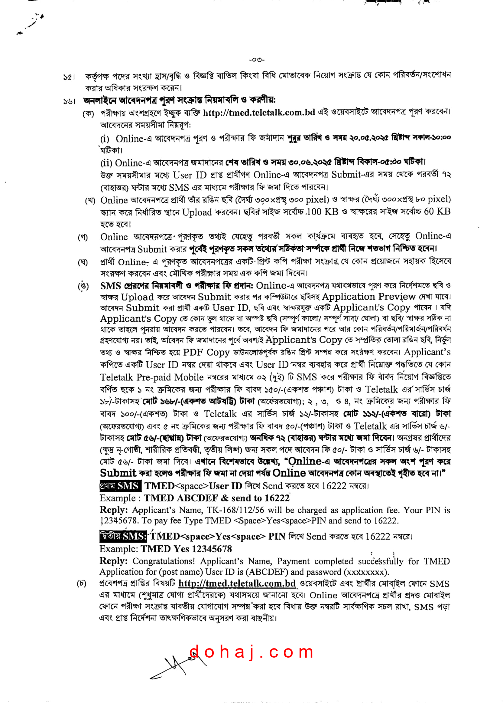 আবেদনের নিয়ম: আগ্রহী প্রার্থীরা অনলাইনে http://tmed.teletalk.com.bd ওয়েবসাইটের মাধ্যমে আবেদন করতে পারবেন।